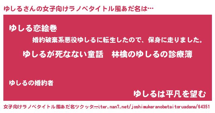 | 男性向けラノベタイトル風あだ名 | 『魔弾の王とゆしる』『ユシルスレイヤー』 |