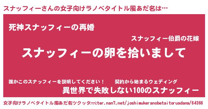 | 男性向けラノベタイトル風あだ名 | 『ダンジョンにスナッフィーを求めるのは間違っているだろうか』 |