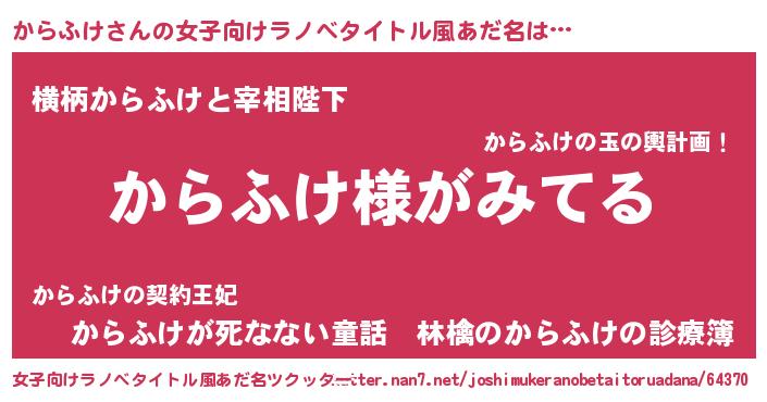 | 男性向けラノベタイトル風あだ名 | 『からふけの嫁は女の子じゃないと思った?』 |
