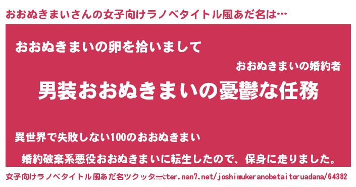 | 男性向けラノベタイトル風あだ名 | 『うちのおおぬきまいが世界を掌握している!』 |
