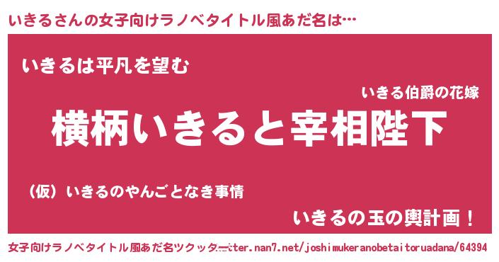 | 男性向けラノベタイトル風あだ名 | 『いきるに滅ぼされるだけの簡単なお仕事です』 |