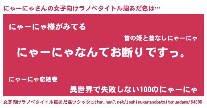 | 肩書あだ名 | 『にゃーにゃ閣下』『にゃーにゃ塾長』 |