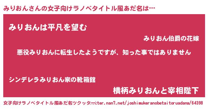 | 意味不明あだ名 | 『住所不定無職みりおん(9歳)』 |