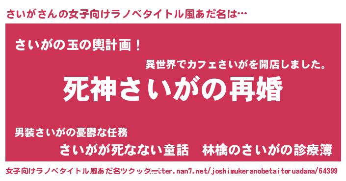 | 男性向けラノベタイトル風あだ名 | 『ノーゲーム・ノーサイガ』 |