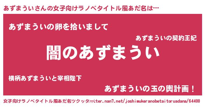 | 男性向けラノベタイトル風あだ名 | 『Re:あずまういから始める異世界生活』 |