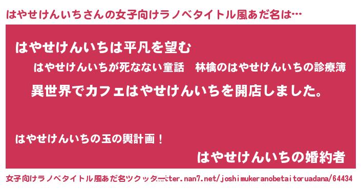 | ヘコむあだ名 | 『はやせけんいち(小並感)』『はやお』 |