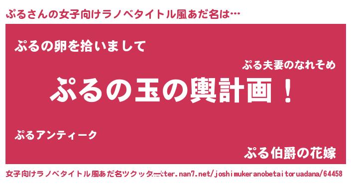 | 男性向けラノベタイトル風あだ名 | 『ぷる~年齢イコール彼女いない歴の魔法使い~』 |