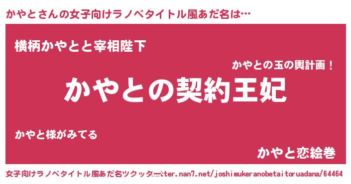 | 胡散臭い通販商品みたいなあだ名 | 『来世でも幸せになれる健康食品…その名も「かやと」』 |