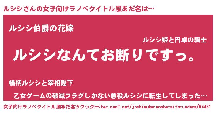 | 男性向けラノベタイトル風あだ名 | 『魔法科高校のルシシ』『ルシシの憂鬱』 |