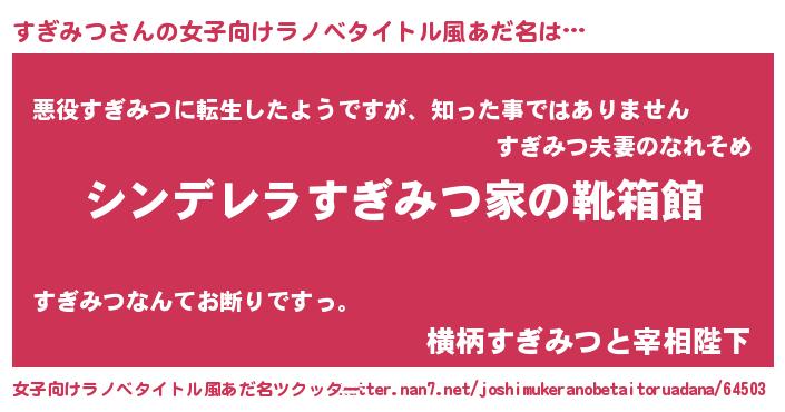 | 男性向けラノベタイトル風あだ名 | 『緋弾のスギミツ』 |