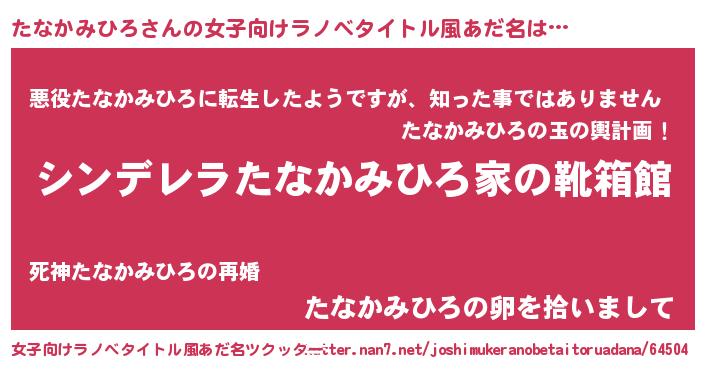 | 男性向けラノベタイトル風あだ名 | 『冴えないたなかみひろの育てかた』 |