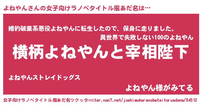 | 意味不明あだ名 | 『つくし科よねやん属』『自称よねやん』 |