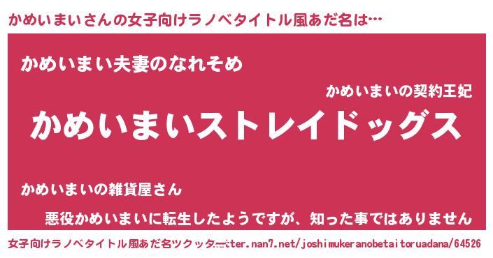 | 男性向けラノベタイトル風あだ名 | 『Re:かめいまいから始める異世界生活』 |