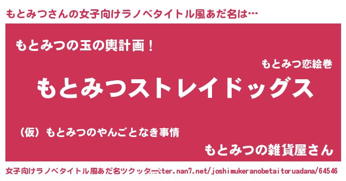 | 恥ずかしいあだ名 | 『モトミツデラックス』『もとっちょ』 |