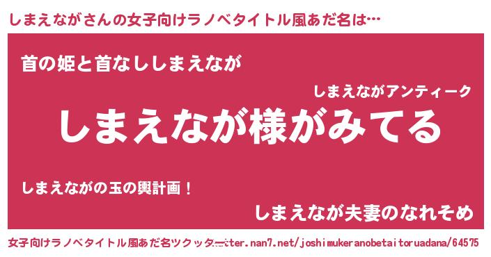 | 男性向けラノベタイトル風あだ名 | 『しまえながの嫁は女の子じゃないと思った?』 |