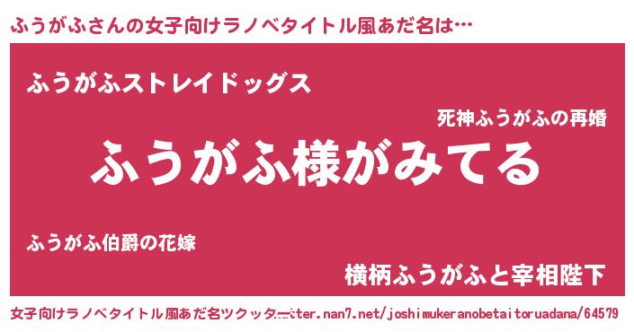 | 男性向けラノベタイトル風あだ名 | 『ふうがふの嫁は女の子じゃないと思った?』 |