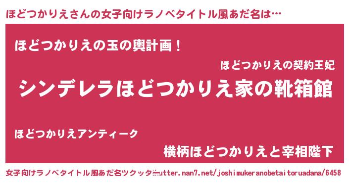 | 胡散臭い通販商品みたいなあだ名 | 『来世でも幸せになれる健康食品…その名も「ほどつかりえ」』 |