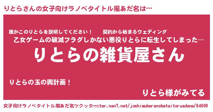 | 男性向けラノベタイトル風あだ名 | 『やはりりとらの青春ラブコメはまちがっている 』 |