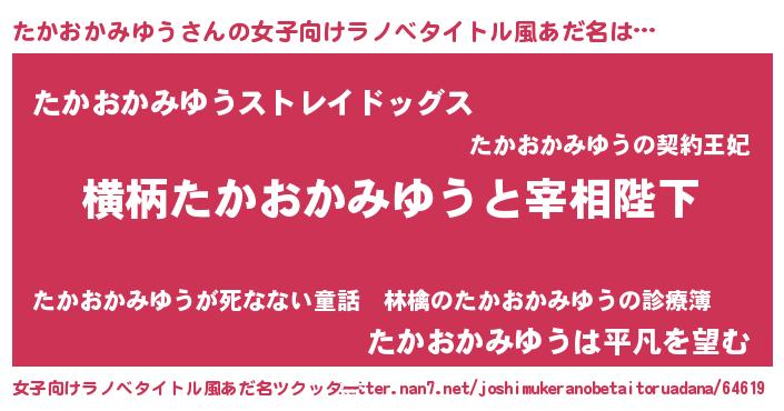 | 男性向けラノベタイトル風あだ名 | 『たかおかみゆうに滅ぼされるだけの簡単なお仕事です』 |
