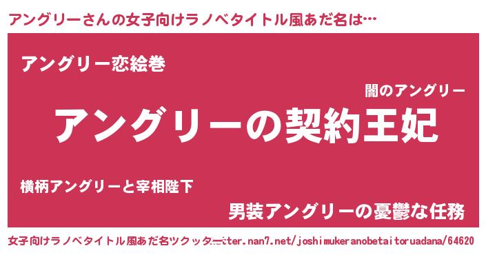 | 意味不明あだ名 | 『永久保存アングリー』『自称アングリー』 |