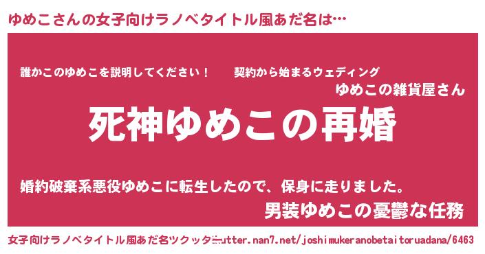 | 男性向けラノベタイトル風あだ名 | 『ノーゲーム・ノーユメコ』 |