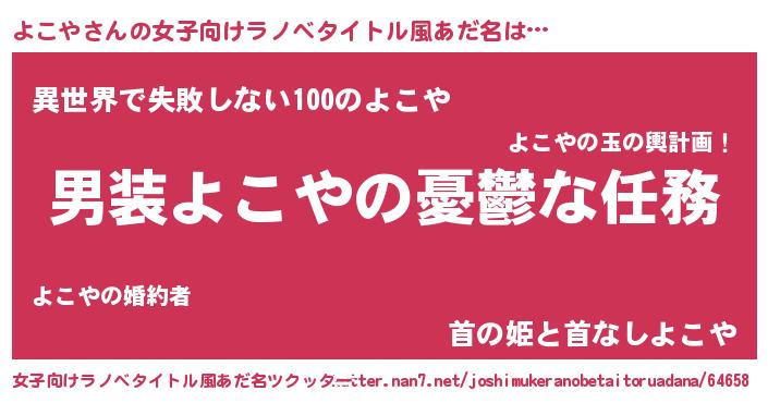 | ヘコむあだ名 | 『よこや(笑)』『つくし』『よこお』 |