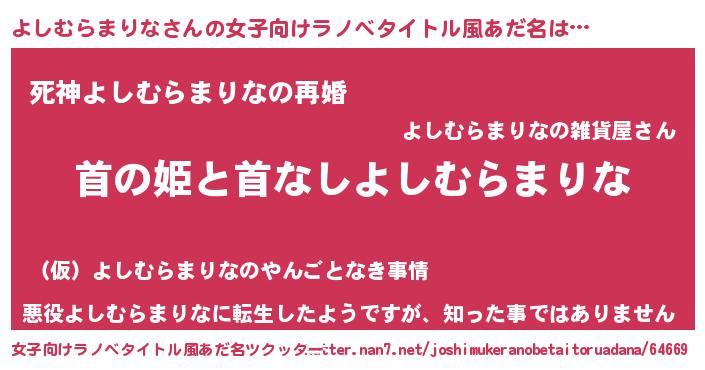 | 男性向けラノベタイトル風あだ名 | 『はたらくよしむらまりなさま!』 |
