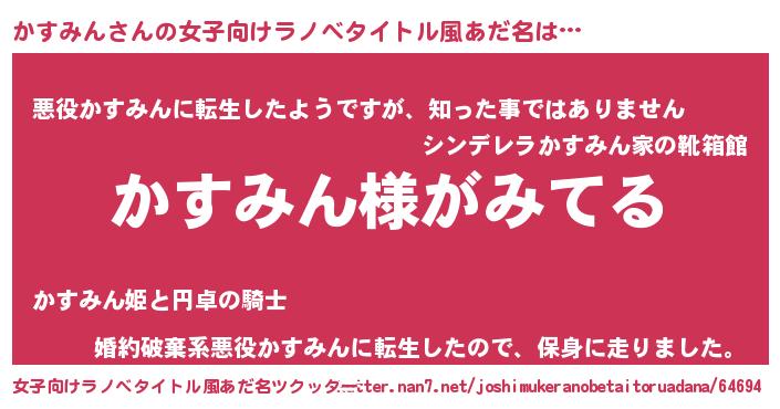 | 男性向けラノベタイトル風あだ名 | 『かすみんの嫁は女の子じゃないと思った?』 |