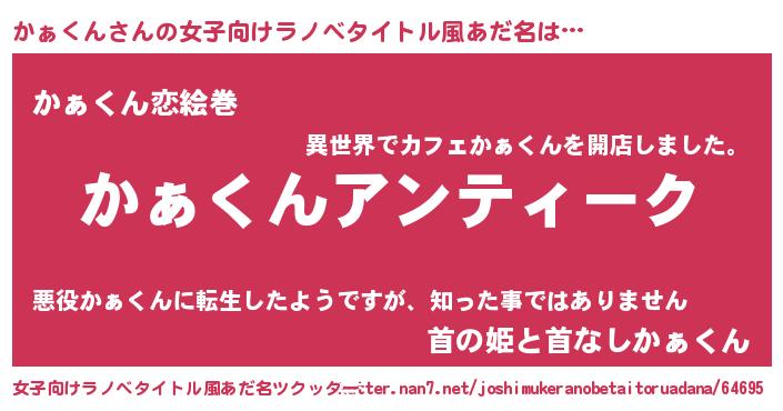 | 意味不明あだ名 | 『自称かぁくん』『永久保存かぁくん』 |