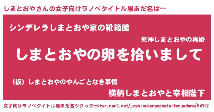 | 意味不明あだ名 | 『とにかく怪しいしまとおや』 |