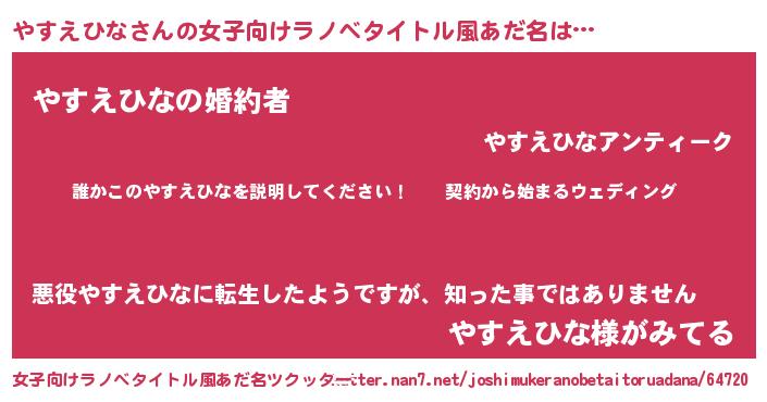 | 男性向けラノベタイトル風あだ名 | 『ヤスエヒナアートオンライン』 |