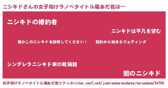 | 男性向けラノベタイトル風あだ名 | 『ニシキドアートオンライン』 |