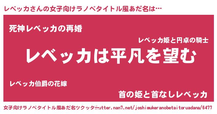 | 胡散臭い通販商品みたいなあだ名 | 『信頼と実績のネックレス…その名も「レベッカ」』 |