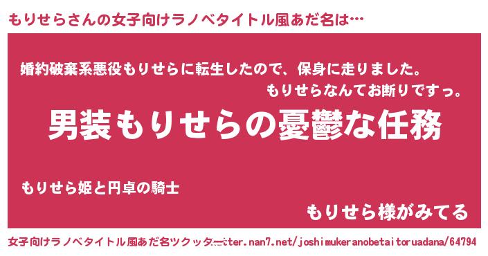| 伝説のあだ名 | 『覚醒した遊び人もりせら』 |