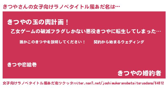 | 男性向けラノベタイトル風あだ名 | 『キツヤアートオンライン』 |