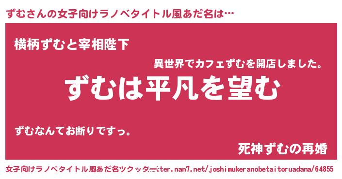 | 男性向けラノベタイトル風あだ名 | 『ダンジョンにずむを求めるのは間違っているだろうか』 |