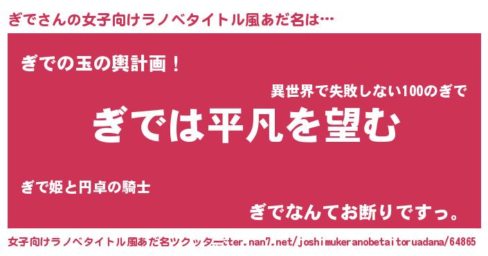 | 男性向けラノベタイトル風あだ名 | 『ダンジョンにぎでを求めるのは間違っているだろうか』 |