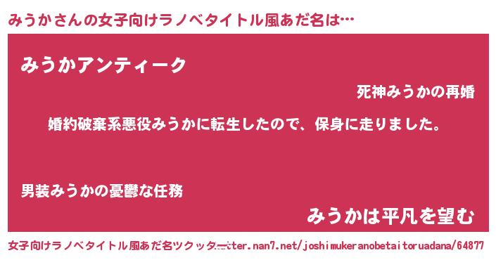 | ヒーロー風カッコイイあだ名 | 『超時空戦士ミウカ』『暗黒騎士ミウ』 |