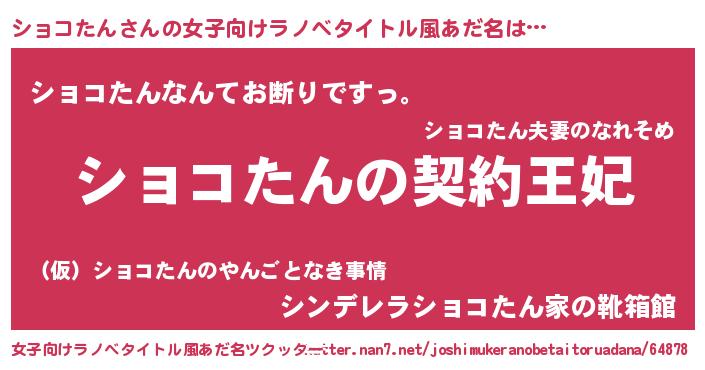 | 胡散臭い通販商品みたいなあだ名 | 『来世でも幸せになれる健康食品…その名も「ショコたん」』 |