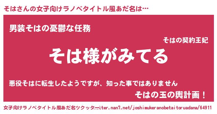 | 男性向けラノベタイトル風あだ名 | 『そはの嫁は女の子じゃないと思った?』 |