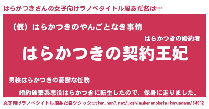 | 胡散臭い通販商品みたいなあだ名 | 『来世でも幸せになれる健康食品…その名も「はらかつき」』 |