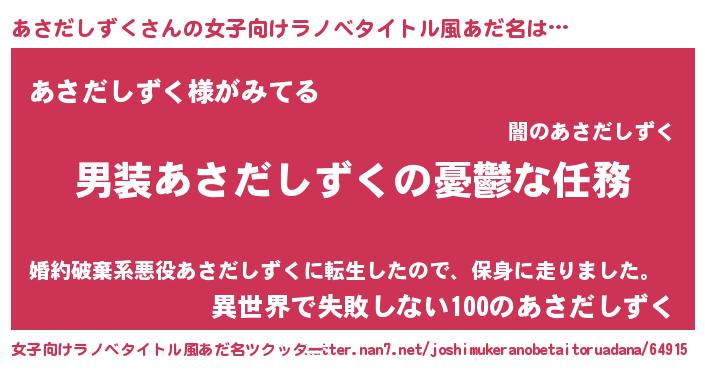 | 男性向けラノベタイトル風あだ名 | 『うちのあさだしずくが世界を掌握している!』 |