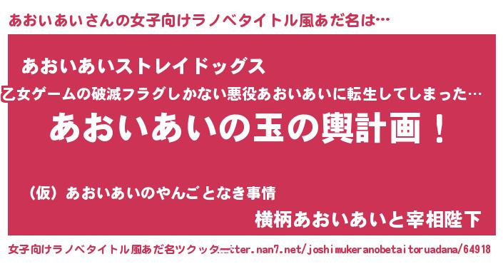 | 男性向けラノベタイトル風あだ名 | 『あおいあい~年齢イコール彼女いない歴の魔法使い~』 |