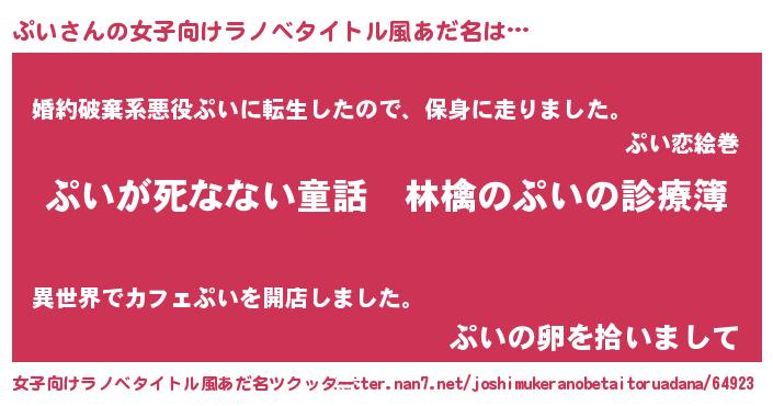 | 男性向けラノベタイトル風あだ名 | 『魔弾の王とぷい』『プイスレイヤー』 |