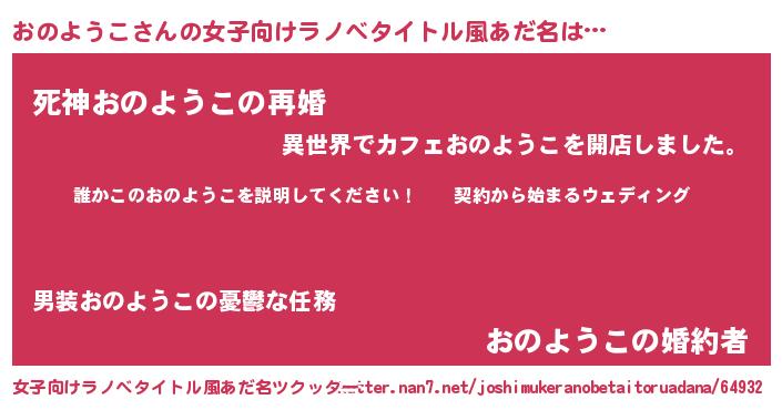 | 男性向けラノベタイトル風あだ名 | 『オノヨウコアートオンライン』 |