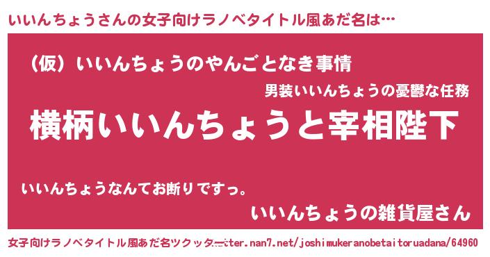 | 男性向けラノベタイトル風あだ名 | 『いいんちょうに滅ぼされるだけの簡単なお仕事です』 |