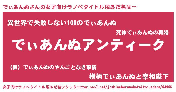 | 意味不明あだ名 | 『自称でぃあんぬ』『永久保存でぃあんぬ』 |