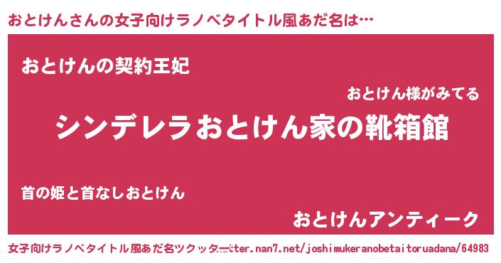 | 胡散臭い通販商品みたいなあだ名 | 『絶対に幸福をもたらす健康食品…その名も「おとけん」』 |
