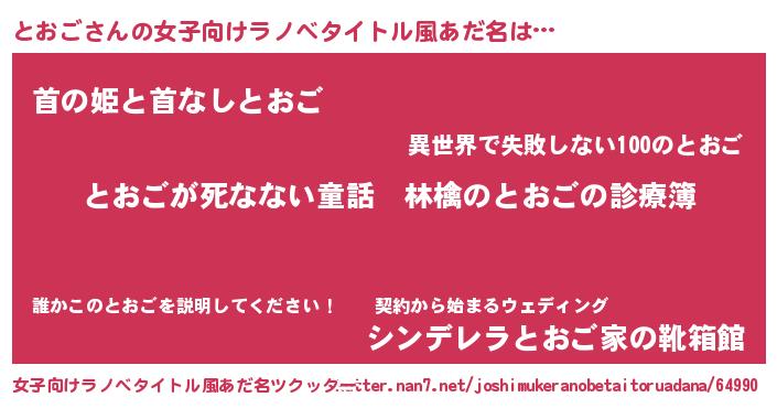 | ヒーロー風カッコイイあだ名 | 『仮面トオダー』『ネオトオゴ』 |