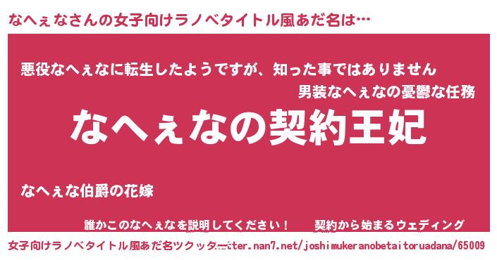 | 男性向けラノベタイトル風あだ名 | 『なへぇなという概念が存在しない退屈な世界 』 |